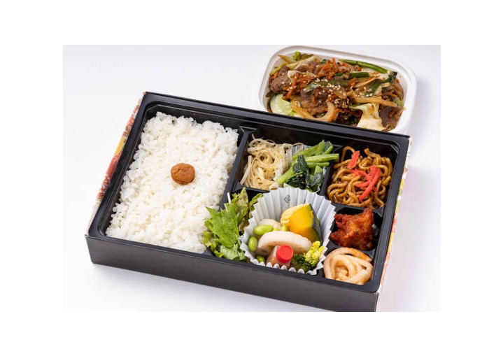 牛プルコギ/焼きそば/ヤンニョムチキン/もやしナムル/小松菜ナムル/大根ナムル/サニーレタス/ブロッコリー/レンコン/ヤングコーン/カボチャ/カリフラワー/枝豆/白飯[約200g]/梅干し/ドレッシング